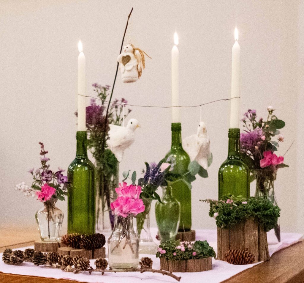 Op deze derde advent zien we in de schikking de aarde met daarin de tekenen van hoop.