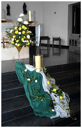 Daarheen verwijzen de bloemen in de schikking.