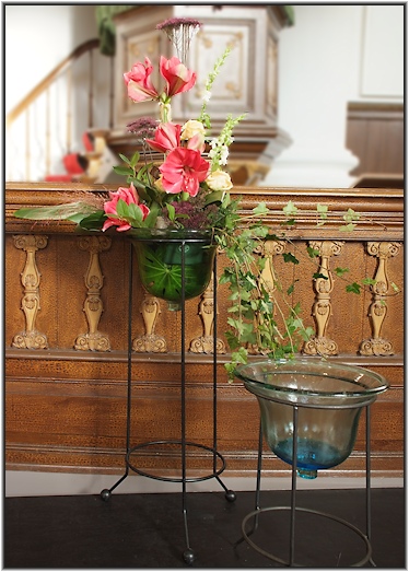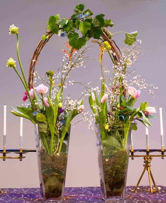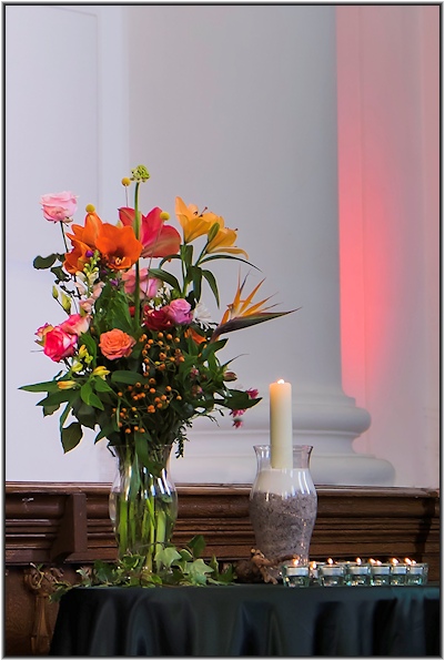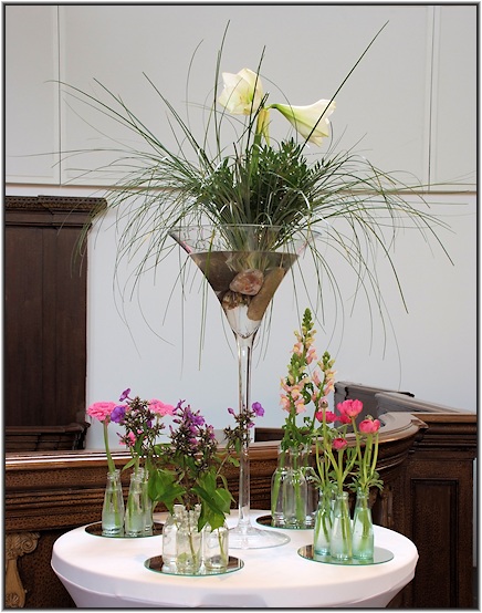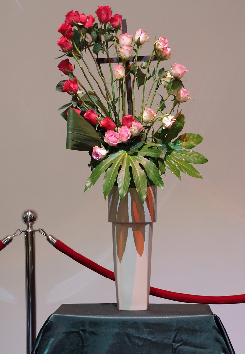 Verschillende bloemen verwijzen naar de verschillende kerken die vandaag bij elkaar zijn.