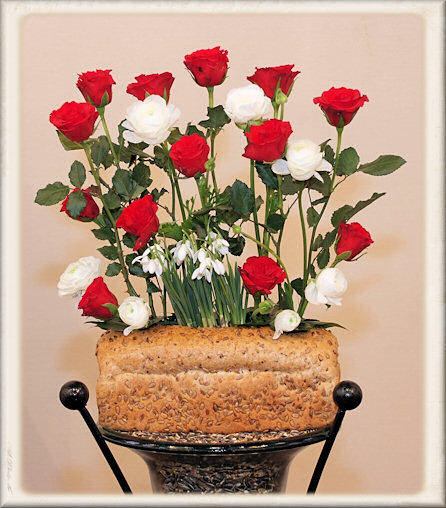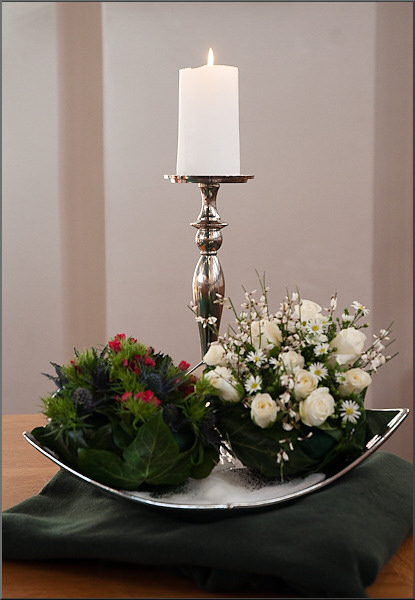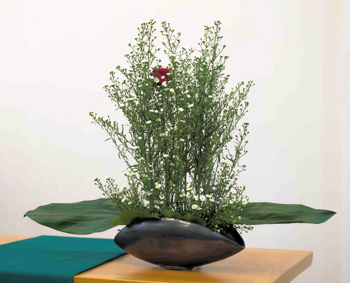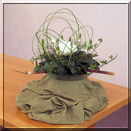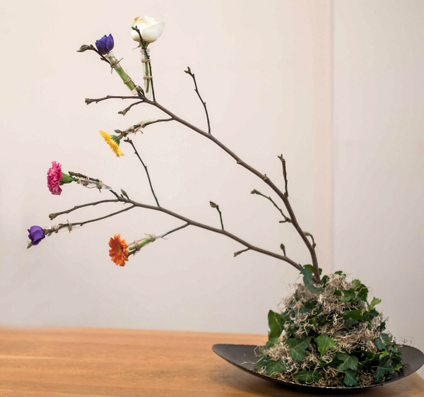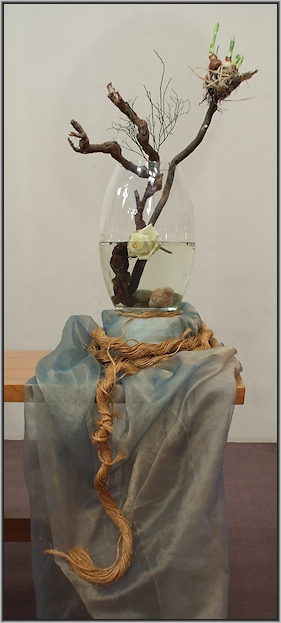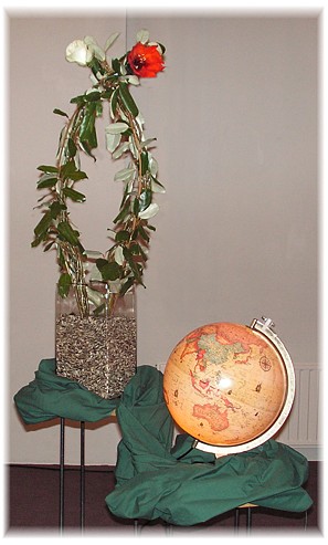 De symbolische schikking is afgeleid van het beeldmerk van onze gastpedikant; een boom in de wind met veel kleur aan de takken.