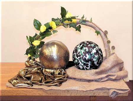 De gouden bal met de goudgele bloemen, verbeeldt onze rijke westerse wereld.