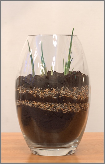 Het arme deel is geschikt met eenvoudige bloemen en kogeldistels als verwijzing naar de armoede in de derde wereld.