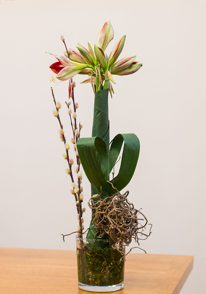 Rijke kleurenschakering van bloemen tegenover een armoedige schikking waar tussen sneeuwklokjes zich laten zien.