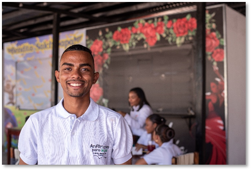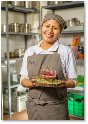 In Colombia krijgen jongeren via Conexión de kans om hun talenten te ontwikkelen en een eigen onderneming te starten. “Dankzij de gerechten die ik bij Conexión leerde maken, kon ik mijn eigen bedrijf beginnen,” vertelt Ana, leerling aan de horeca-opleiding. Mayra vult aan: “Ik heb geleerd hoe ik gewone, alledaagse en lokale product of ingredienten kan omtoveren tot iets heel bijzonders. Voor mij opent Conexión de deur naar een nieuw begin.”